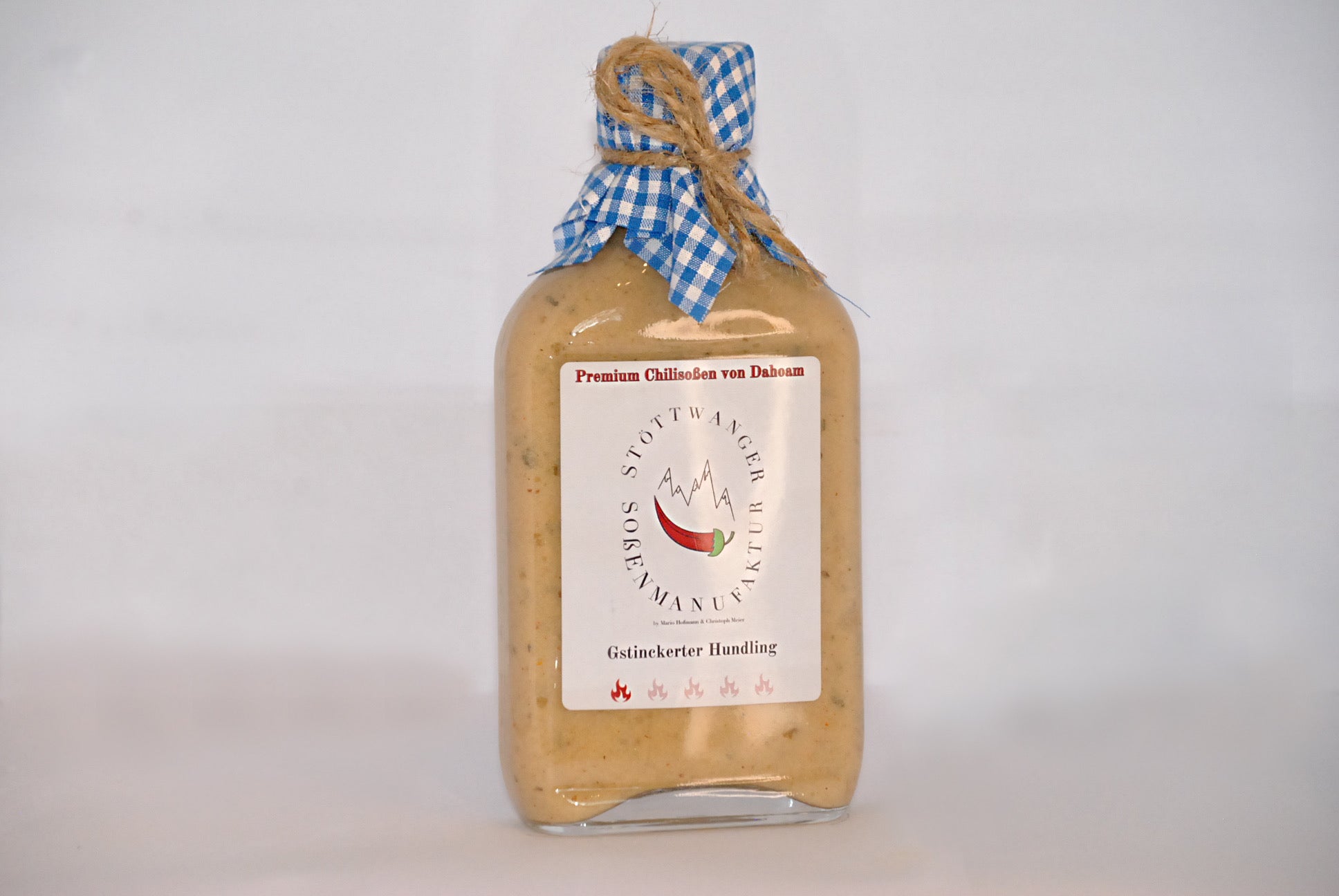 Zutaten: Vollmilch, Kondensmilch, frischer Knoblauch, brauner Zucker, Apfelessig, Limettensaft, Bird Eye Chili, getrocknete Zwiebel ,Xanthan, diverse Gewürze